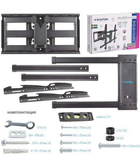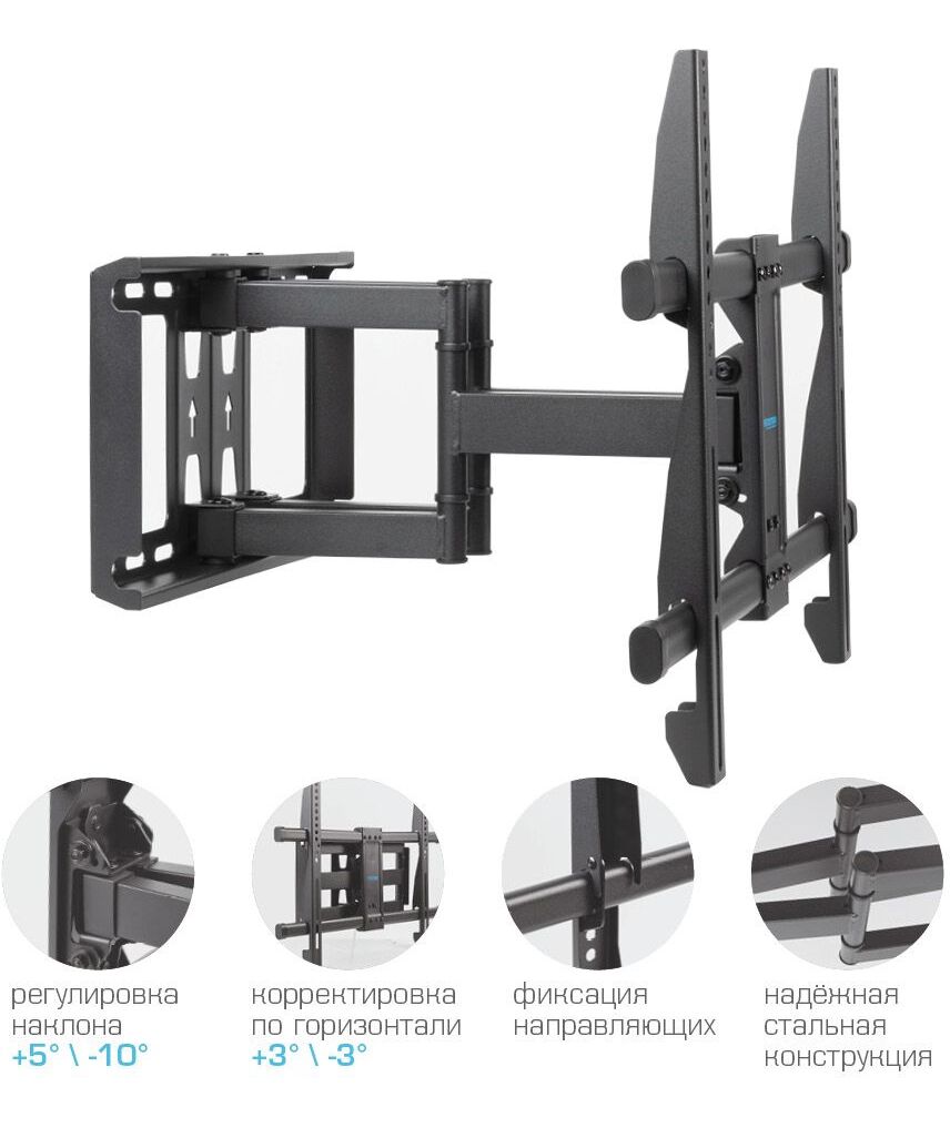 Кронштейн для телевизора Kromax GALACTIC-57 черный 32"-75" макс.60кг настенный поворотно-выдвижной и наклонный [90218]
