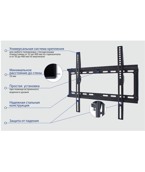 | Подходит для телевизоров c диагональю | 22", 24", 26", 28", 32", 37", 39", 40", 42", 46", 48", 50", 52", 55", 60", 65" |