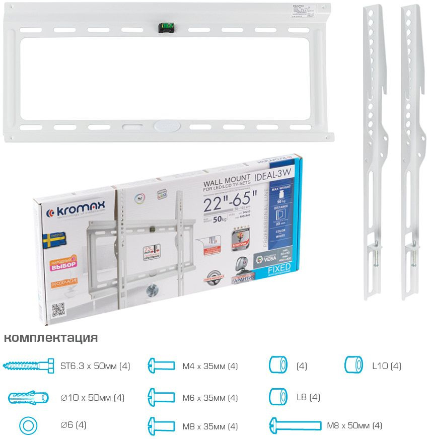 Кронштейн для телевизора Kromax IDEAL-3 белый 22"-65" макс.50кг настенный фиксированный [26019]