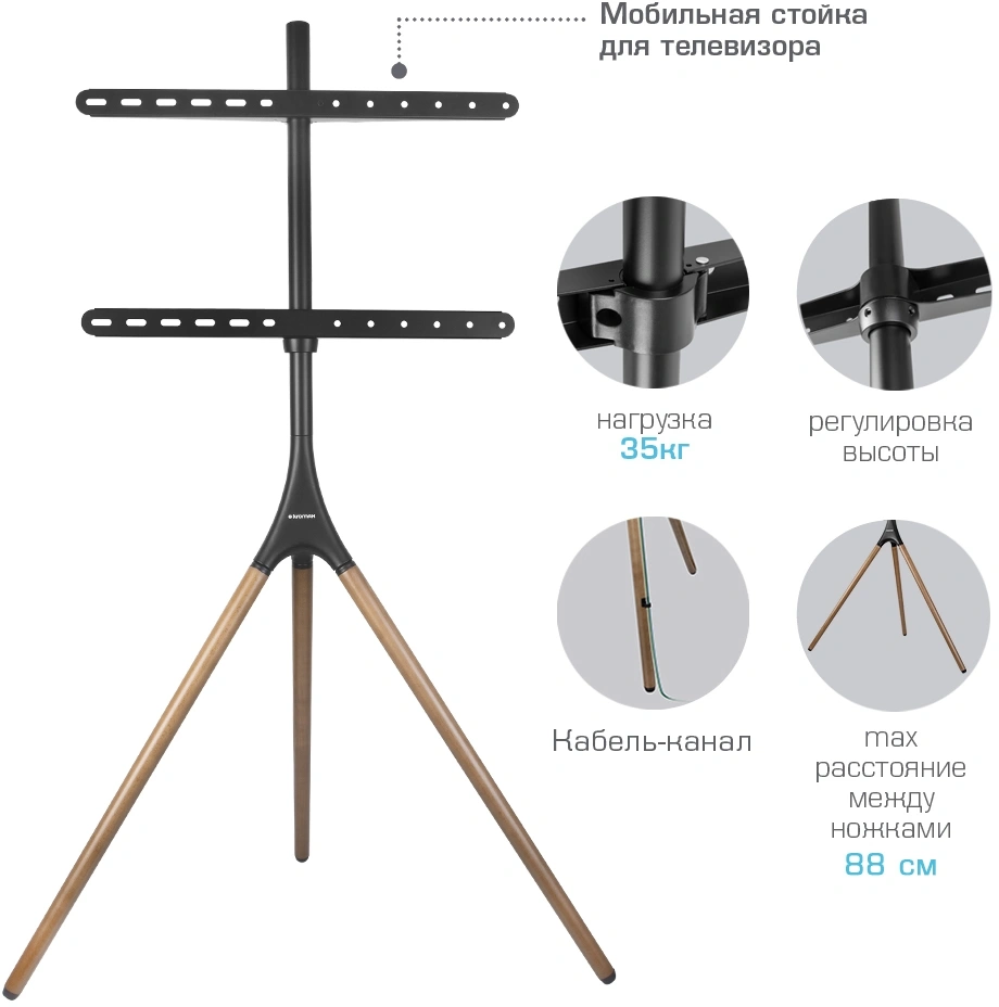 Стойка для телевизора Kromax OMEGA-11 серебристый/береза 32"-70" макс.35кг напольный фиксированный [90553]