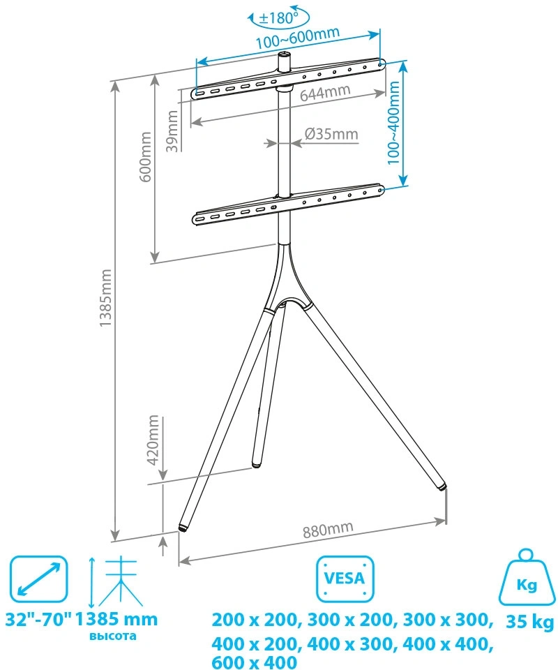 | Поддержка крепления VESA | 200x200, 300x200, 300x300, 400x200, 400x300, 400x400, 600x400 |