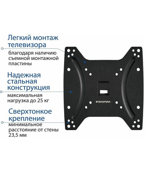 Кронштейн для телевизора Kromax OPTIMA-200 черный 15"-42" макс.25кг настенный фиксированный [28005]