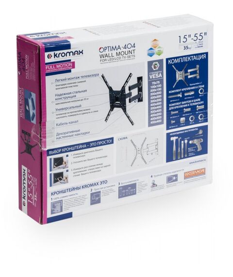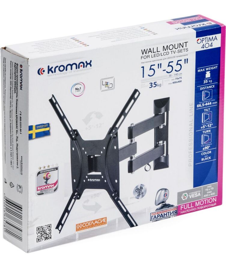 Кронштейн для телевизора Kromax OPTIMA-404 черный 15"-55" макс.35кг настенный поворотно-выдвижной и наклонный [28011]