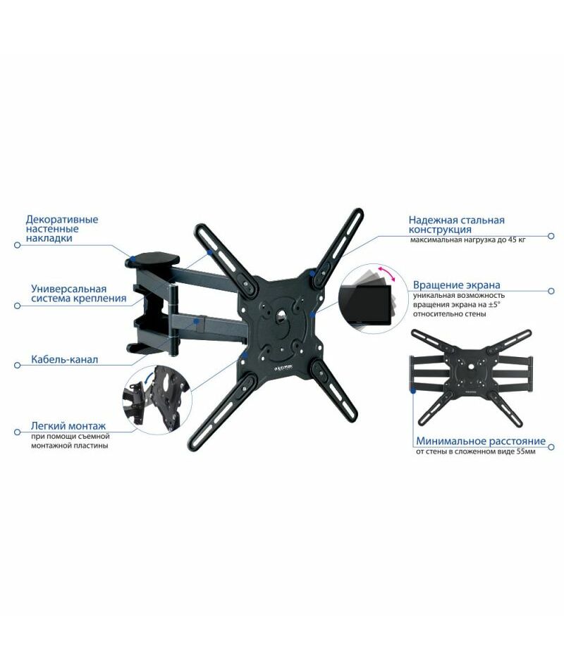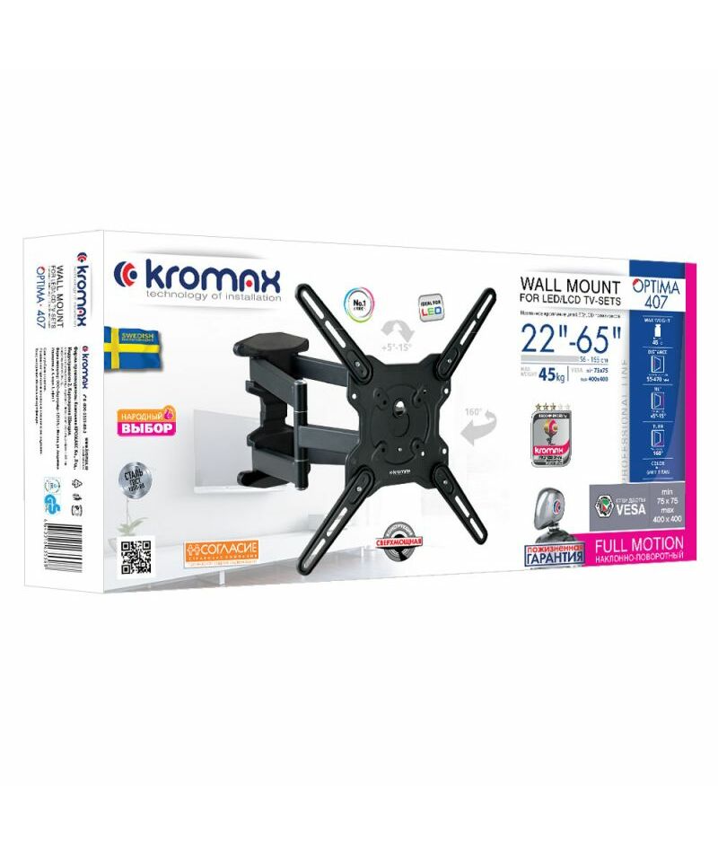 Кронштейн для телевизора Kromax OPTIMA-407 серый 22"-65" макс.45кг настенный поворот и наклон [20242]