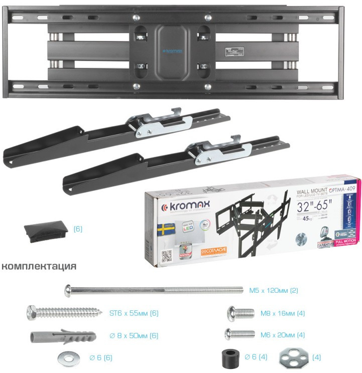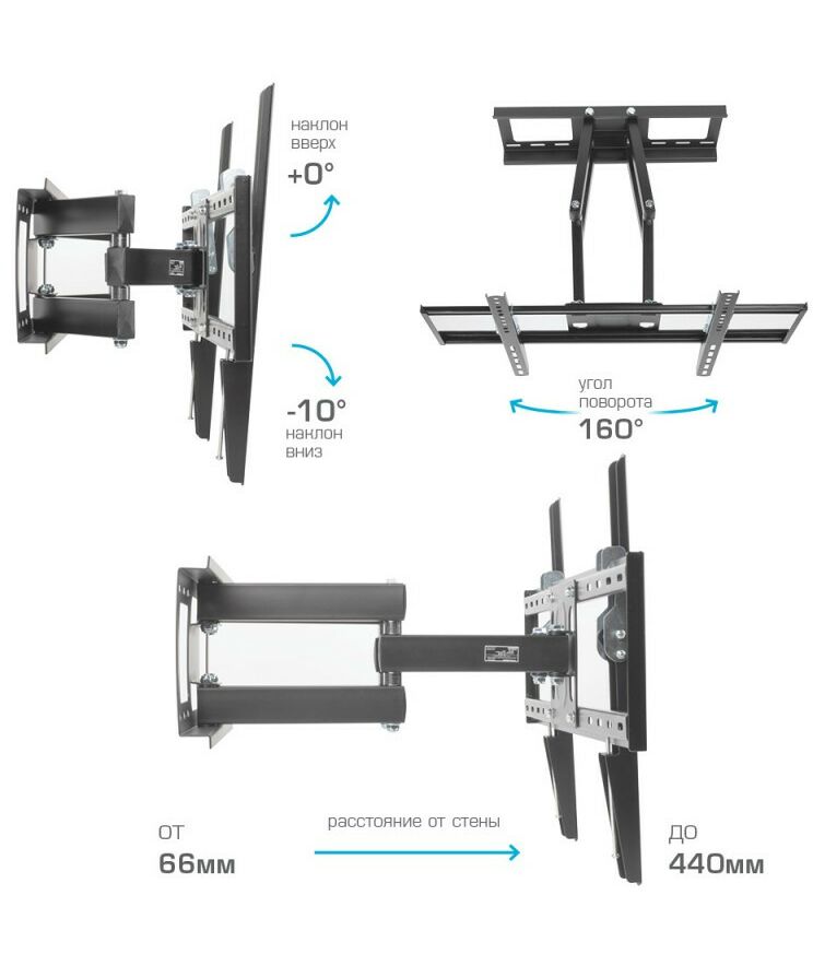 Кронштейн подходит для большинства телевизоров популярных брендов, среди которых Samsung, LG, Sony, Panasonic, Sharp, Toshiba, KIVI, Xiaomi Mi, SUPRA, Hyundai, Erisson, Tcl, Asano, Horizont, JVC, Thomson, HARTENS, Skyworth, HAIER, BBK, AVEL, Витязь, Веко, BQ, DEXP, OZON, SkyLine, Pioneer, Philips, Rolsen, Harper, Hisense, Hitachi, Polarline, Prestigio и других.