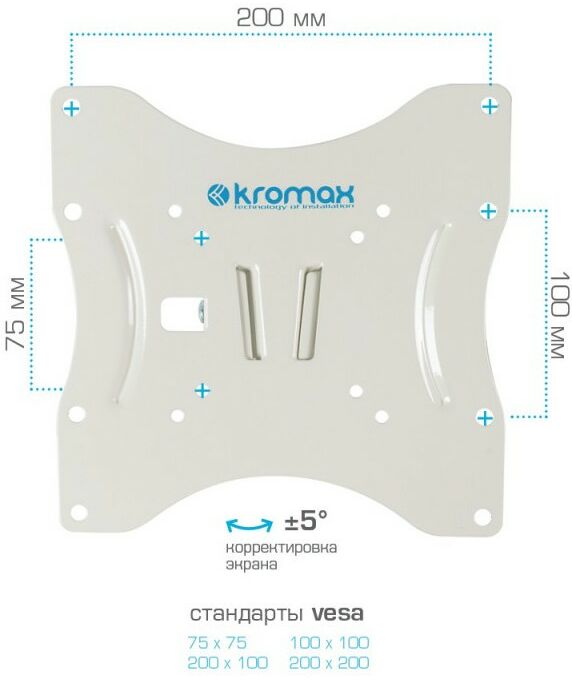 - Крепёжные отверстия KROMAX TECHNO-3 WHITE изготовлены по стандарту VESA