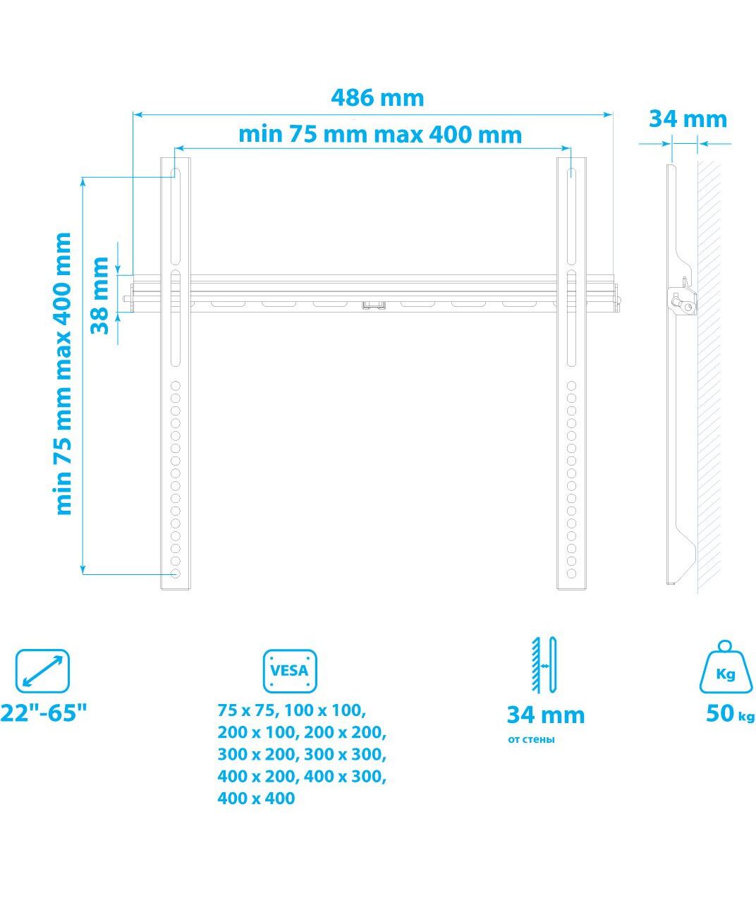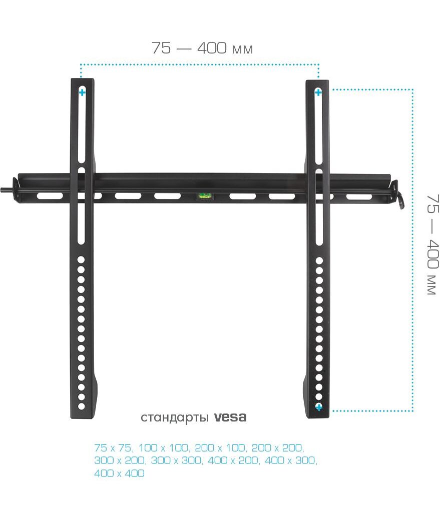 | Поддержка крепления VESA | 100x100, 200x100, 200x200, 200x300, 300x100, 300x200, 300x300, 300x400, 400x200, 400x300, 400x400, 50x50, 75x75 |