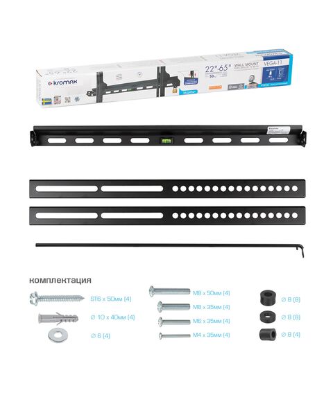 Кронштейн для телевизора Kromax VEGA-11 черный 22"-65" макс.50кг настенный фиксированный [26013]