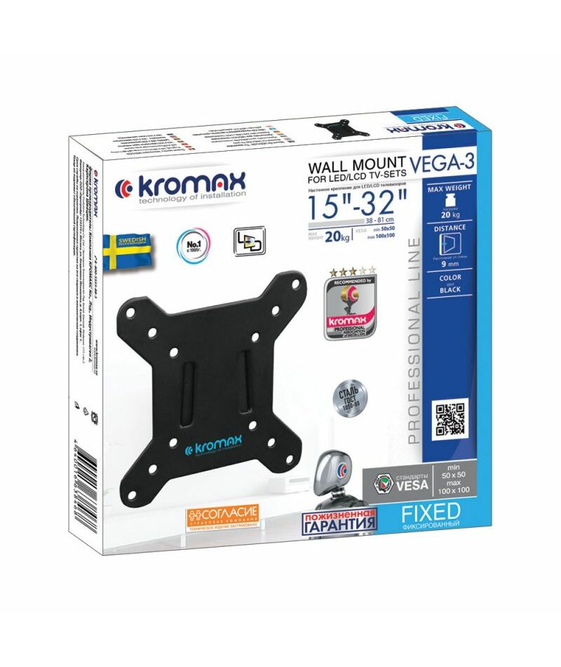 Кронштейн для телевизора Kromax VEGA-3 new черный 15"-32" макс.20кг настенный фиксированный [24043]