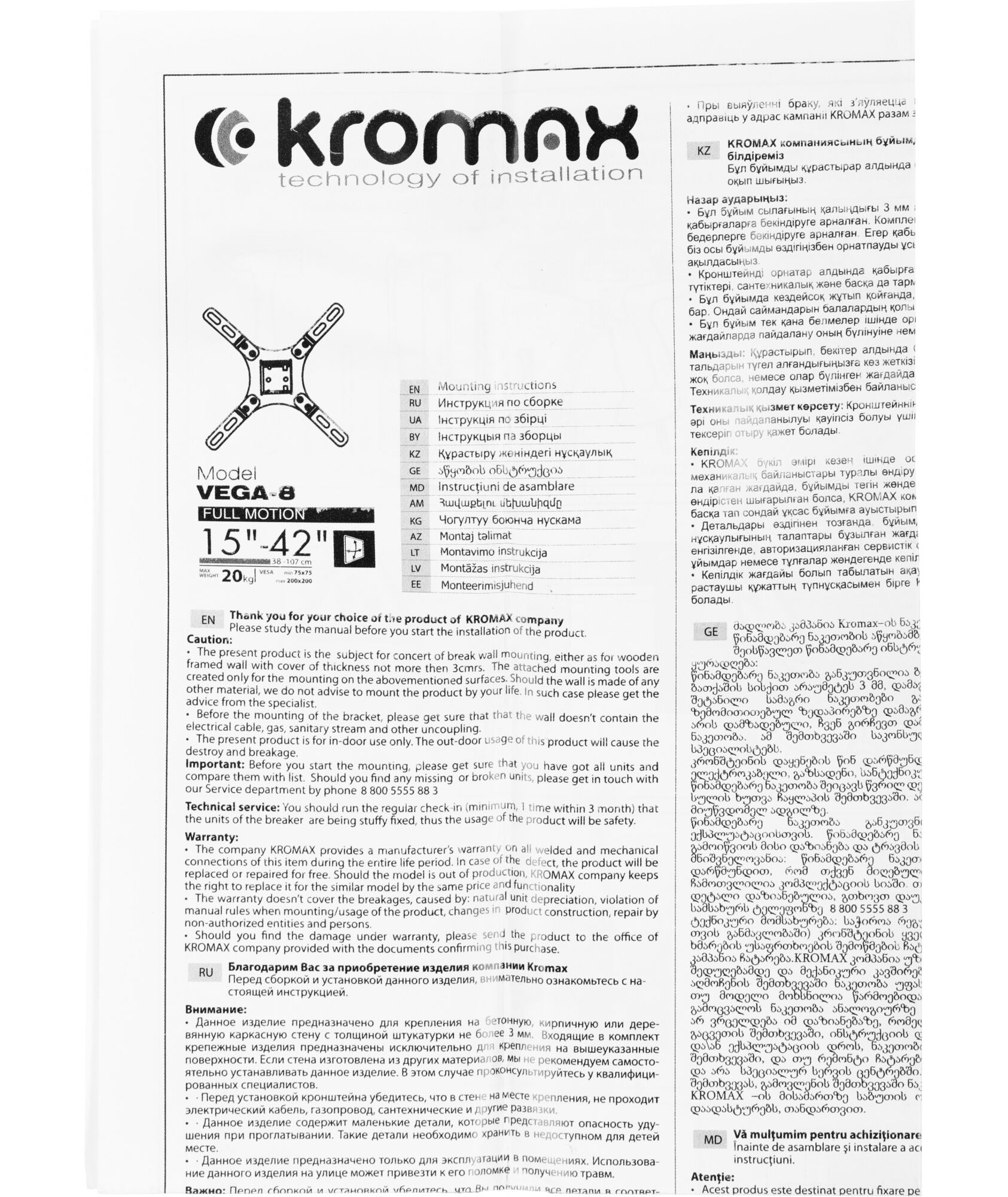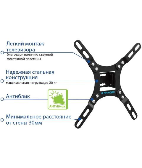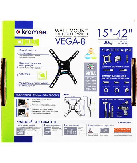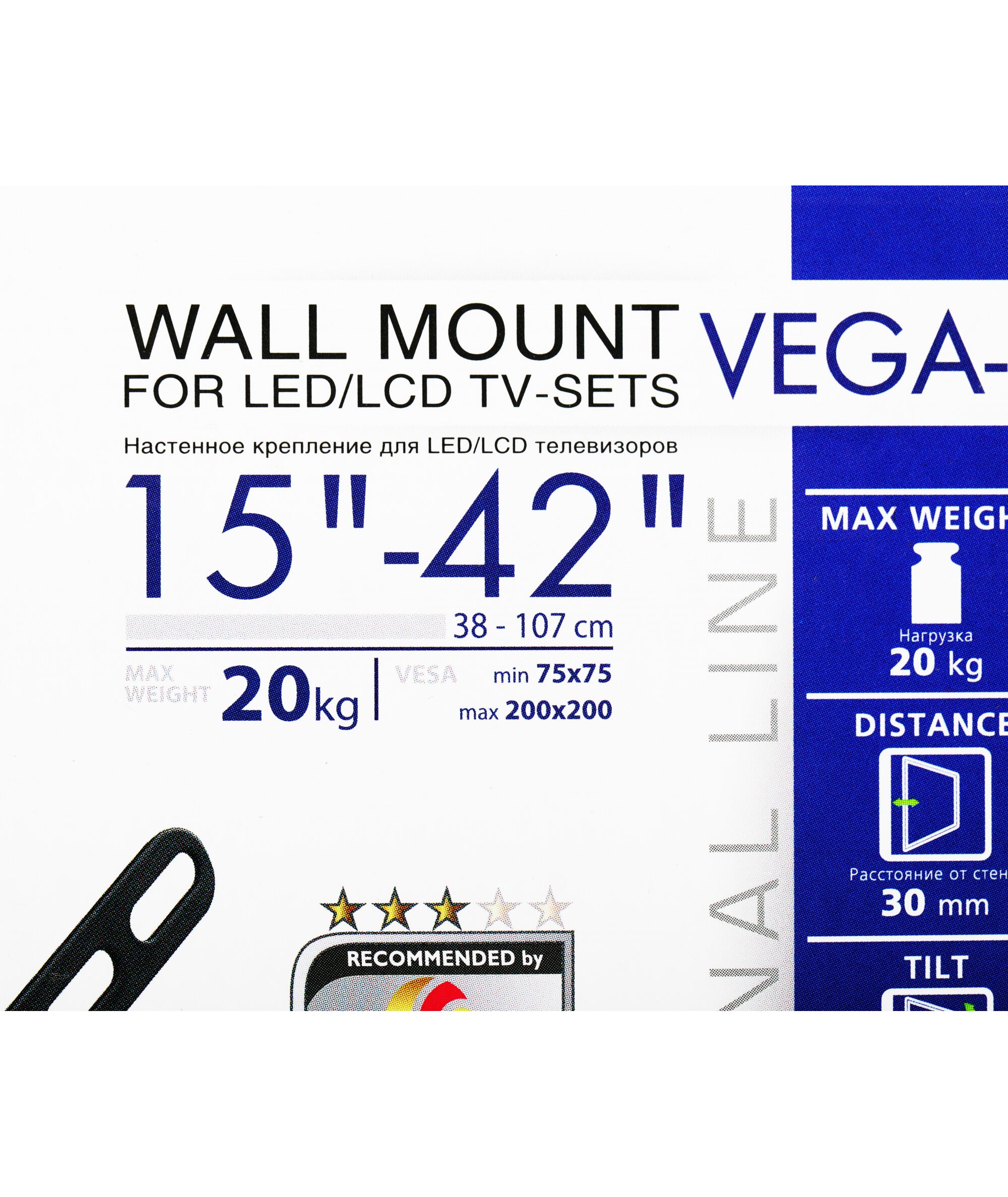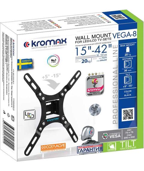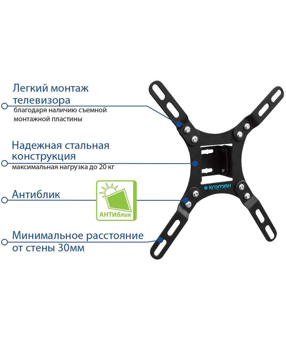 Кронштейн для телевизора Kromax VEGA-8 черный 15"-42" макс.15кг настенный наклон [24048]