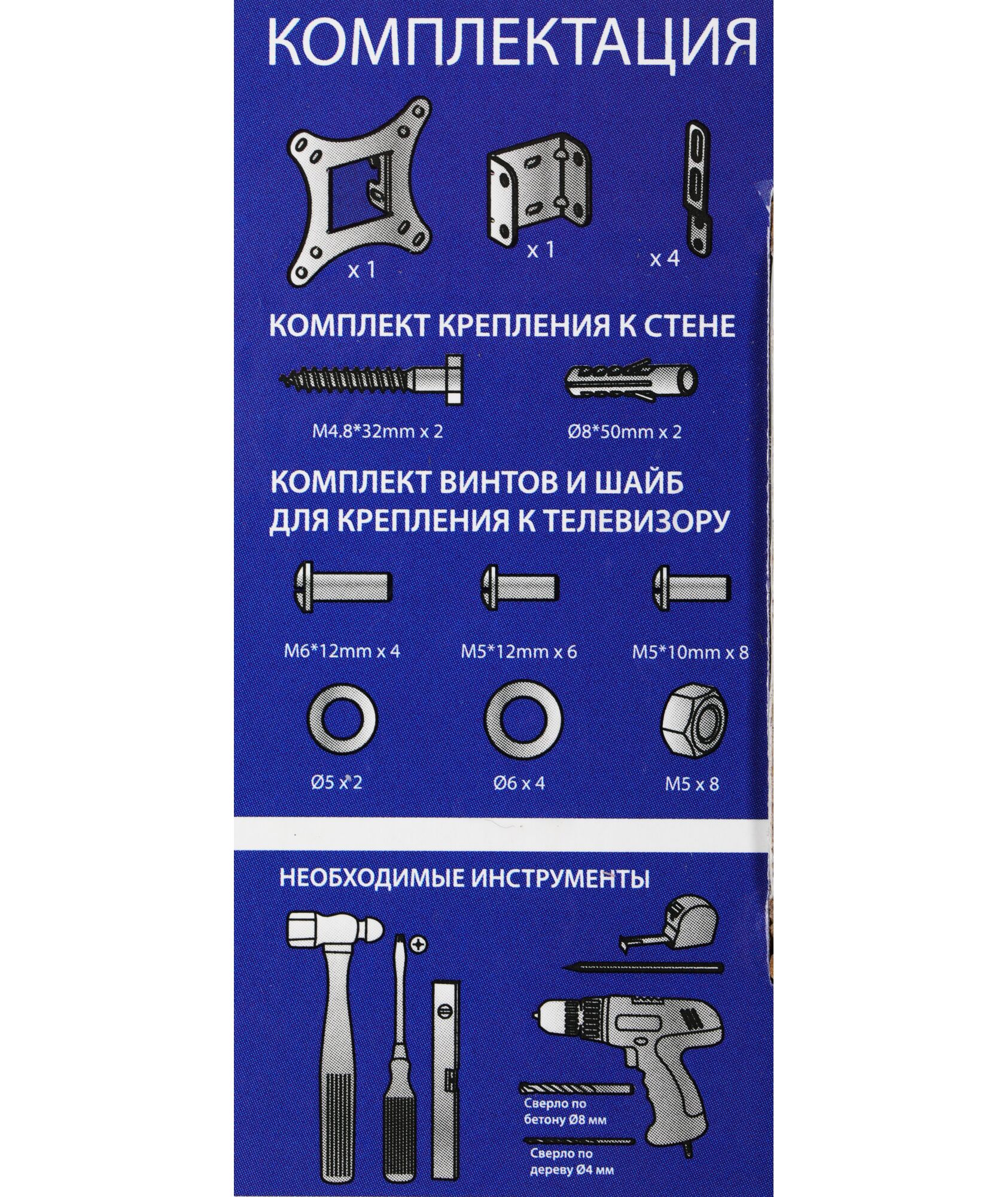 | Подходит для телевизоров c диагональю | 15", 19", 22", 24", 26", 28", 32", 37", 39", 40", 42" |