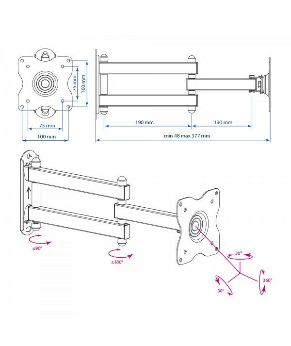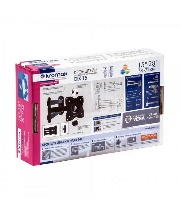Кронштейн для LED/LCD Kromax DIX-15 black ВРАЩЕНИЕ ЭКРАНА НА 360°, возможность размещения экрана, как в вертикальном, так и в горизонтальном положении