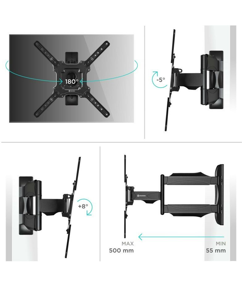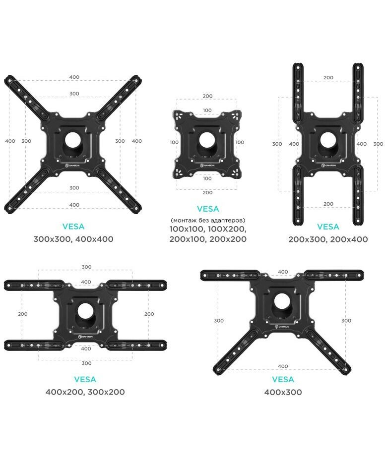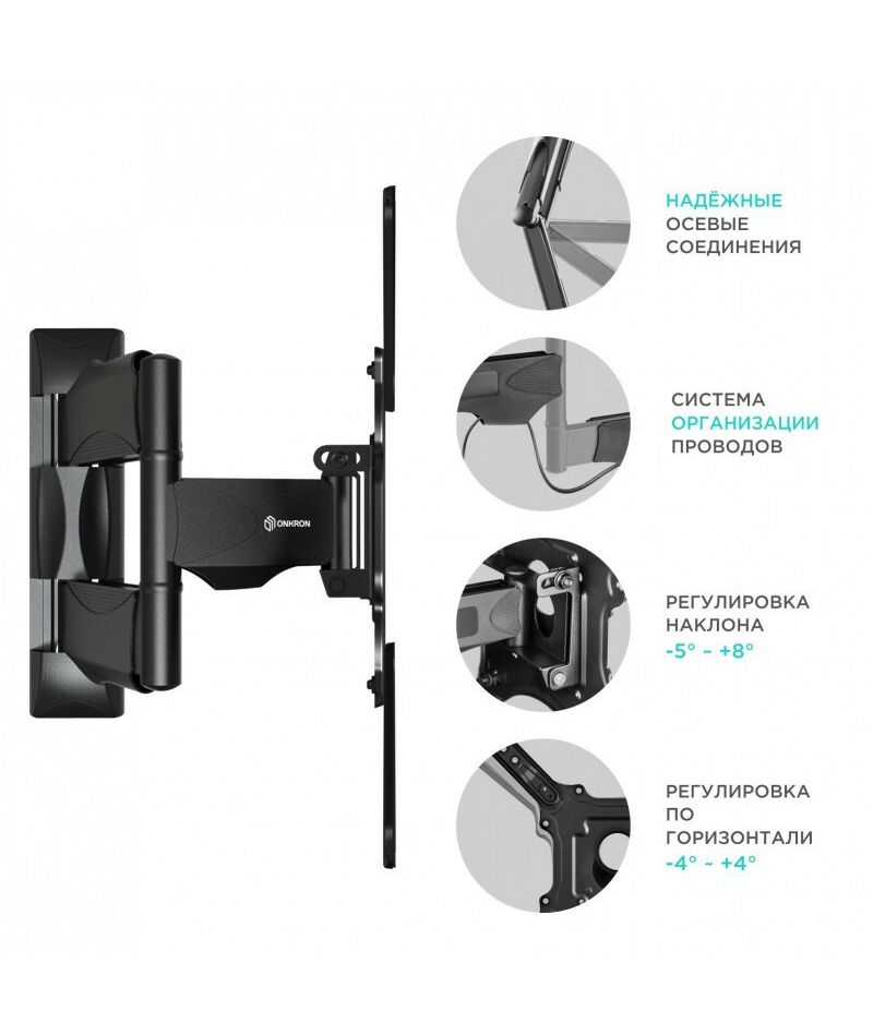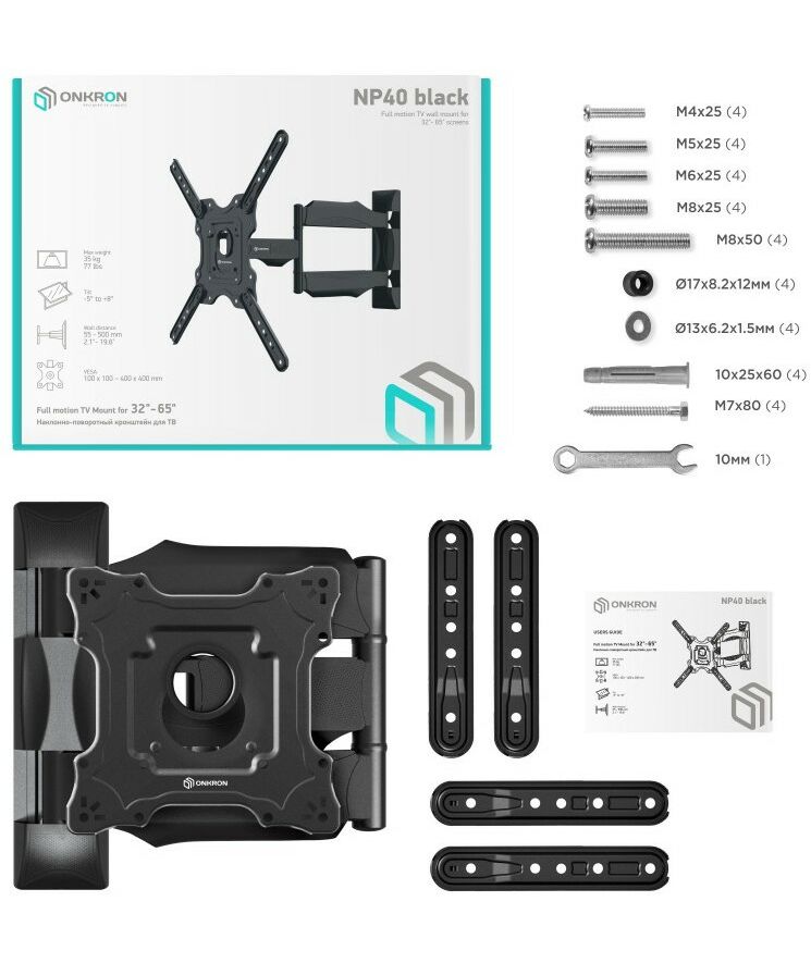 - Настенный наклонно-поворотный кронштейн ONKRON NP40 в черном цвете предназначен для дисплеев с диагональю от 32 до 65 дюймов (81,28 - 165,1 см)