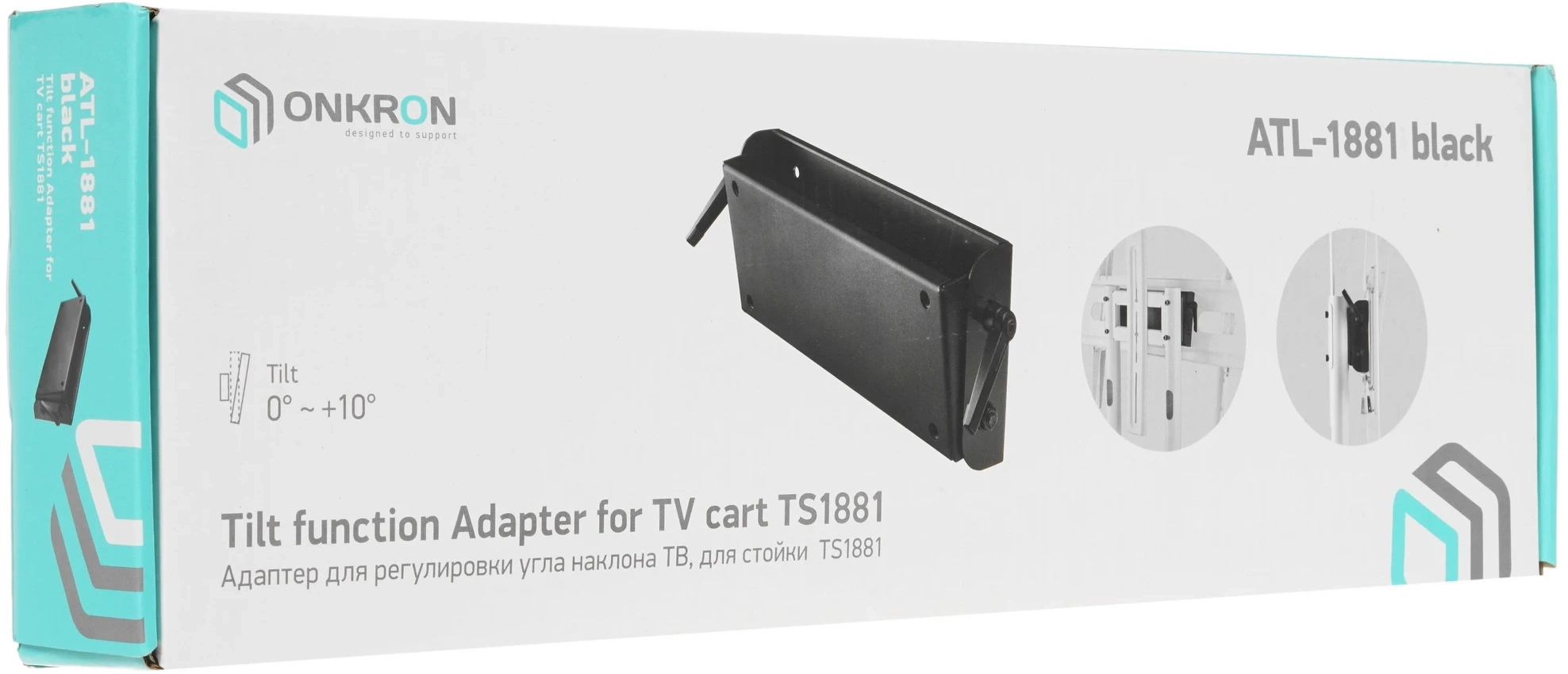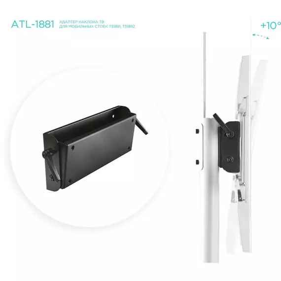 | Особенности | Адаптер наклона ONKRON ATL-1881 подходит для мобильных стоек TS1881 White, TS1881 Black, TS1892 Black. Данный адаптер позволяет с лёгкостью регулировать угол наклона вашего ТВ для обеспечения максимально комфортного просмотра. |