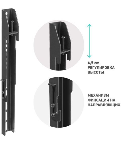 Вертикальные направляющие ONKRON для видео стен нерегулируемые, без наклона. VESA: 200x200, 200x300, 300x200, 300x300, 300x400, 400x200, 400x300, 400х400 мм. Материал: холоднокатаная сталь, SPCC class. Регулировка длины, регулировки наклона нет.