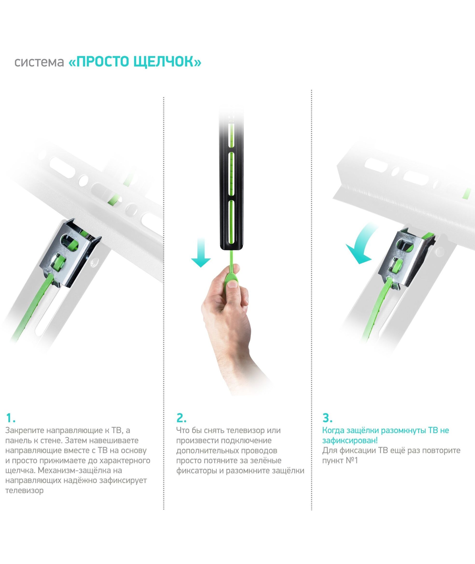 | Особенности | Встроенный уровень. Простая система фиксации Вашего телевизора. Тонкий профиль. |