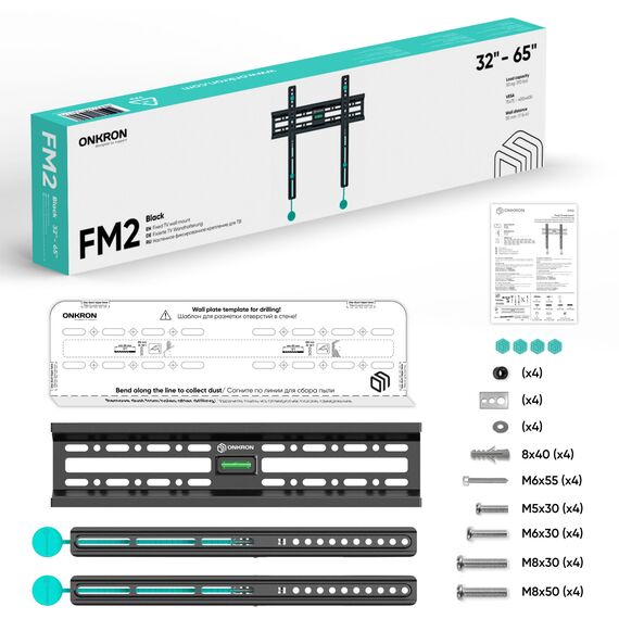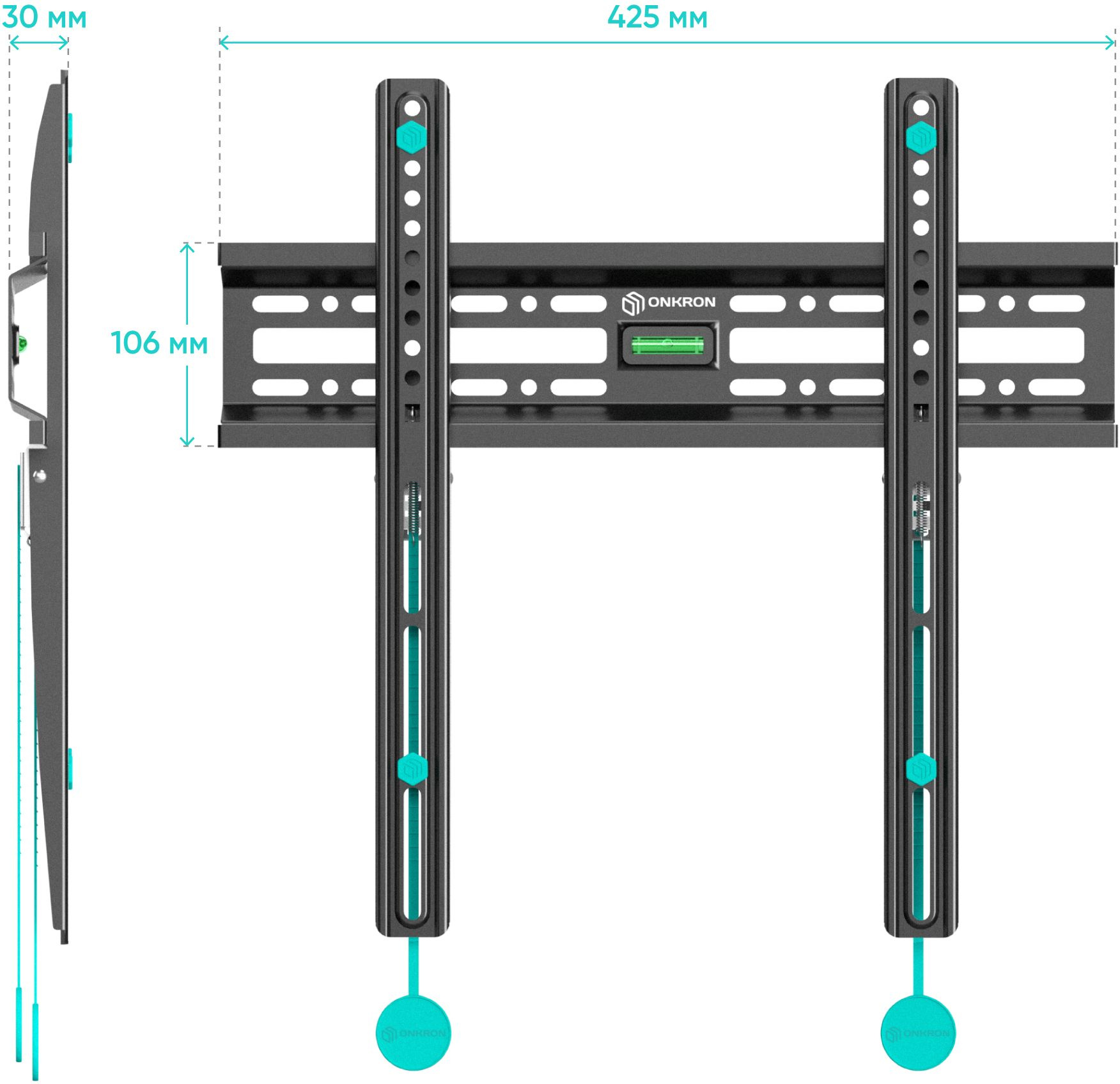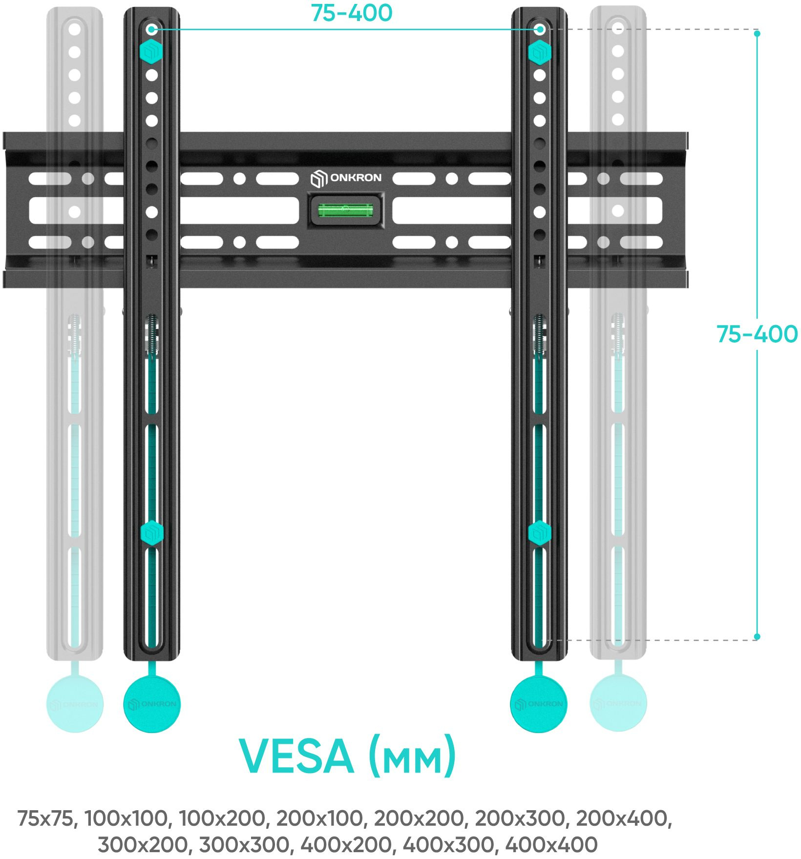 Кронштейн для телевизора ONKRON FM2 черный 32"-65" макс.50кг настенный фиксированный