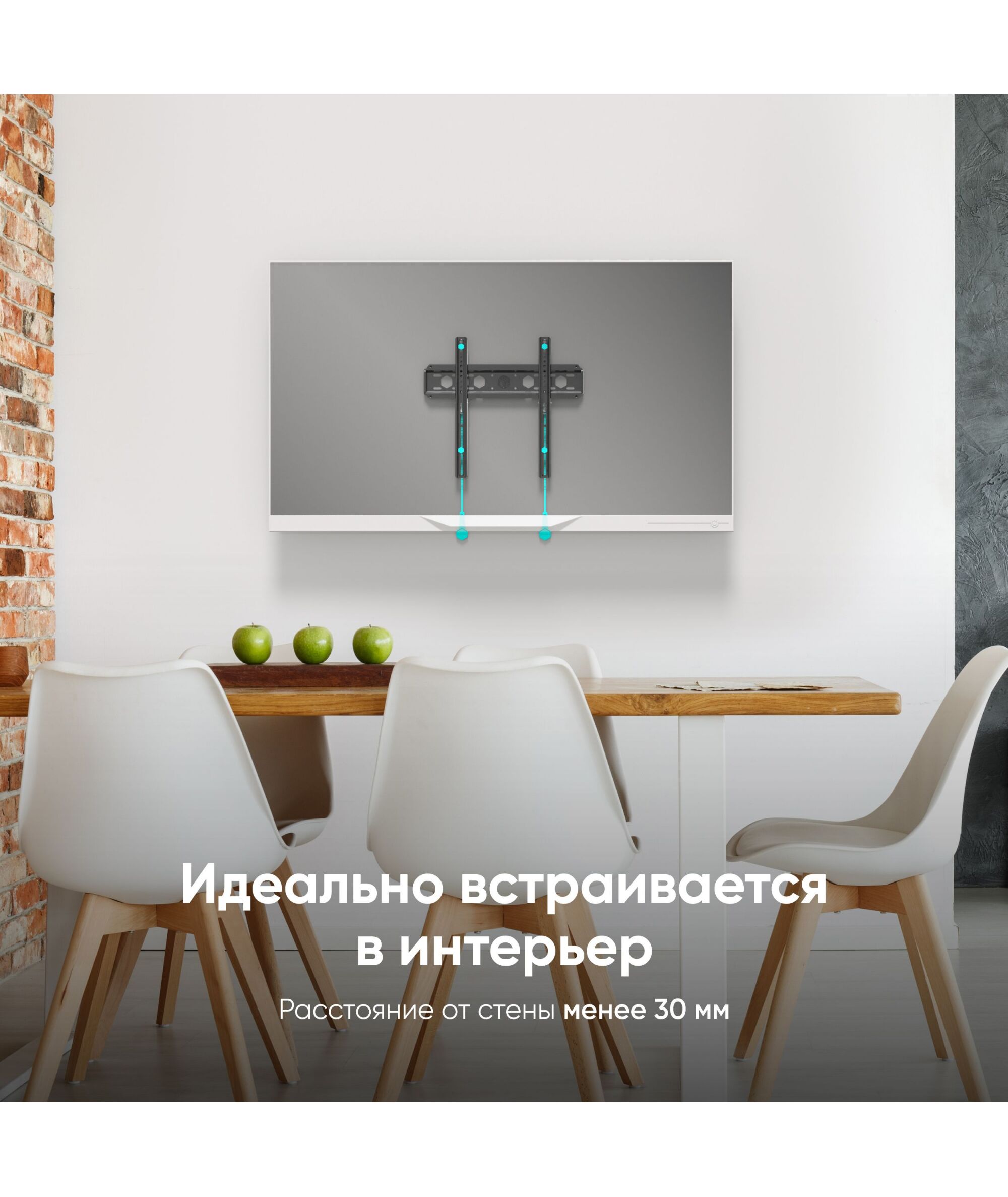 Настенный кронштейн ONKRON FM5 предназначен для телевизоров с диагональю от 35 до 65 дюймов . Максимальный выдерживаемый вес составляет 57 кг.