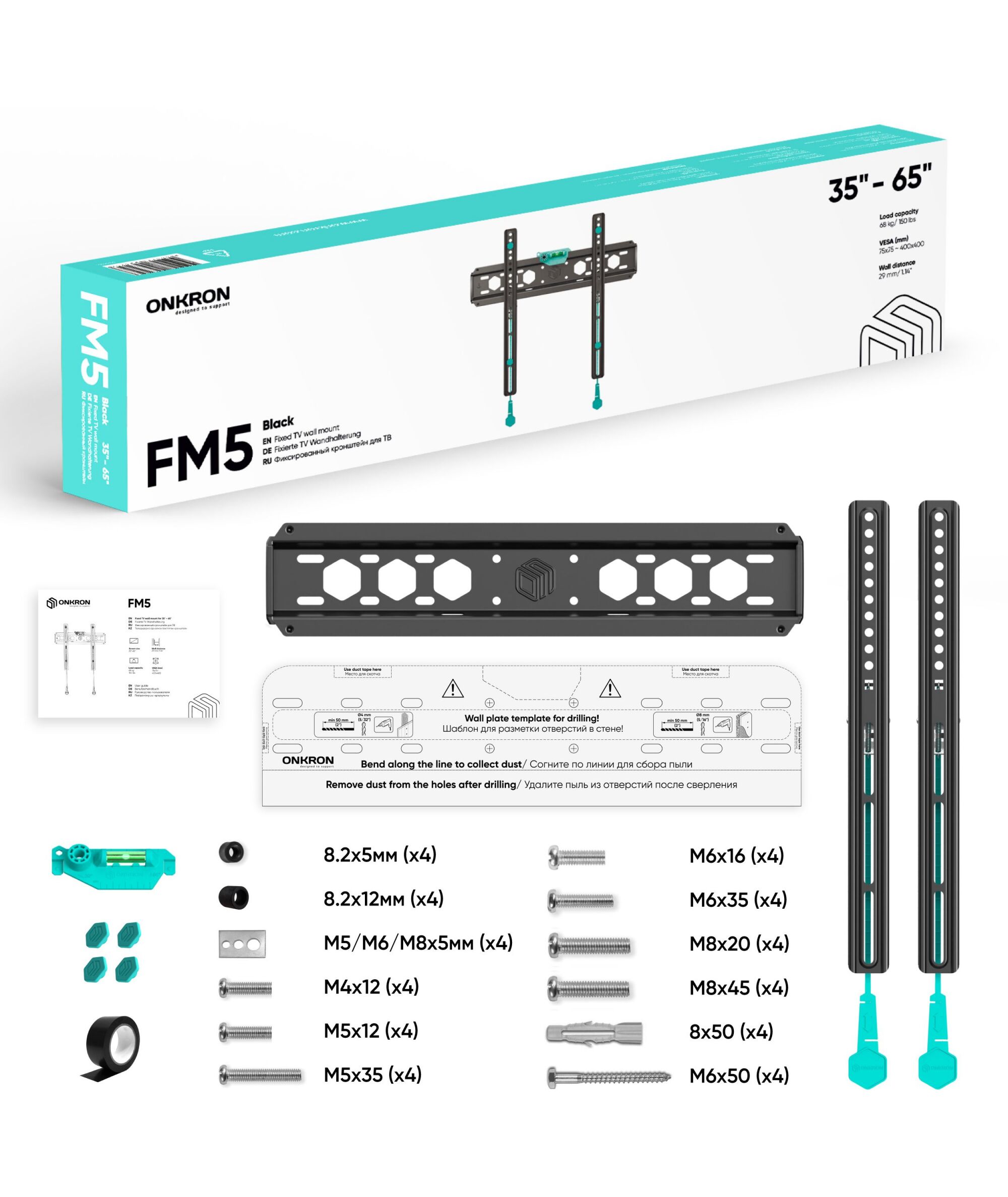 Кронштейн для телевизора ONKRON FM5 черный 35"-65" макс.57кг настенный фиксированный