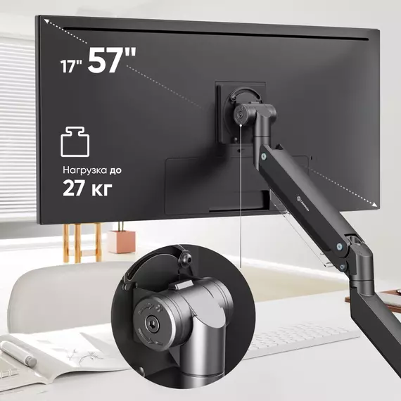 Кронштейн для мониторов ONKRON G130 черный 17-57 макс.27кг настольный поворот и наклон