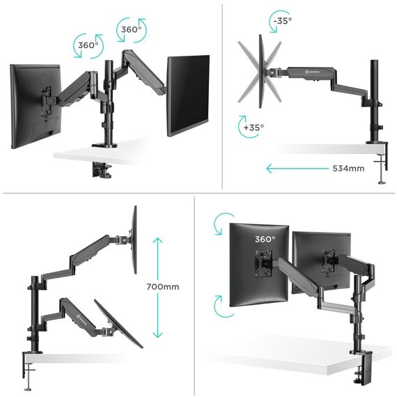 Настольный держатель для эргономичной регулировки положения 2 дисплеев с диагональю от 13 до 32 дюймов