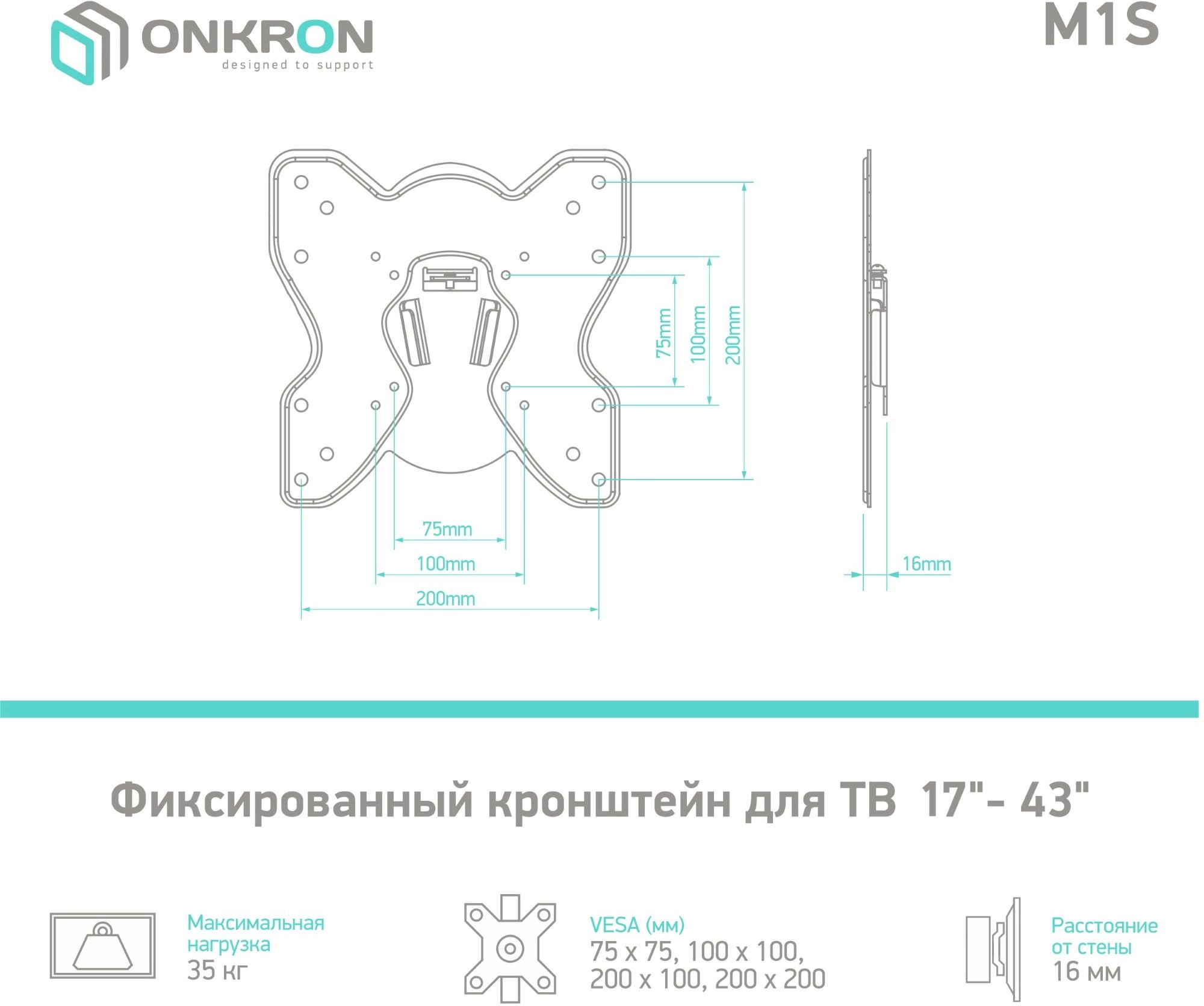 Кронштейн для телевизора ONKRON M1S черный 17"-43" макс.35кг настенный фиксированный