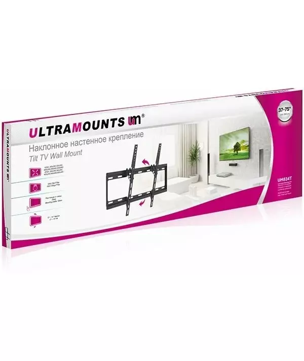 Кронштейн для телевизора настенный Ultramounts UM 834T черный, 37"-70", до 35кг, наклон
