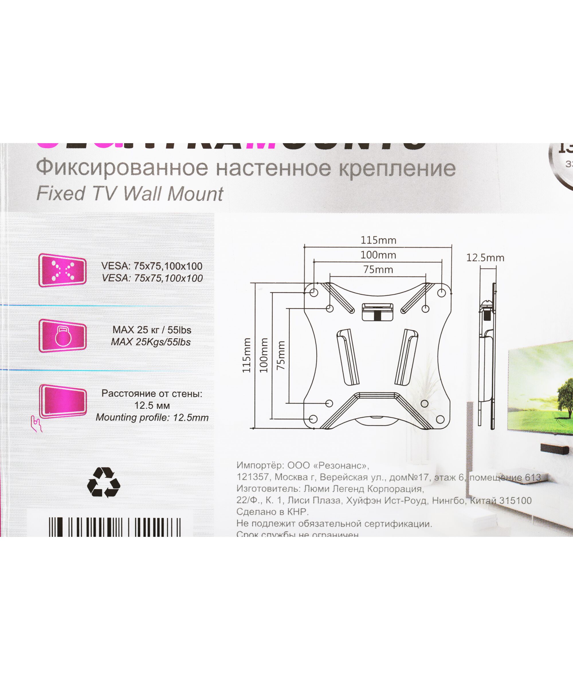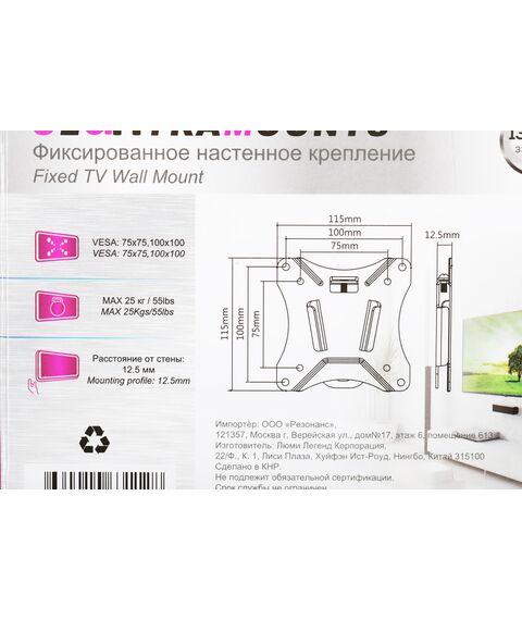 Ультратонкое настенное крепление позволяет разместить телевизор максимально близко к стене. Кронштейн, состоящий из двух частей, легко установить. В комплект поставки входит необходимый для монтажа крепеж.