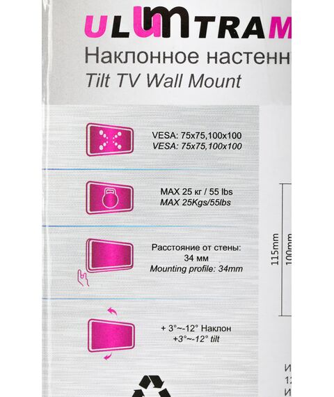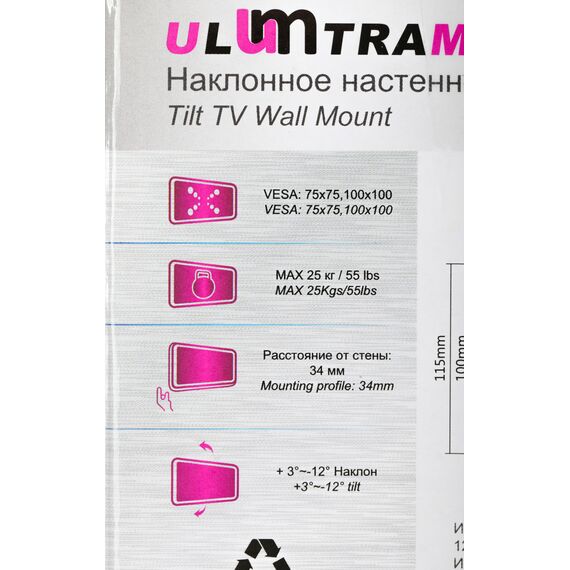 Кронштейн для телевизора Ultramounts UM830T черный 13"-27" макс.25кг настенный наклон