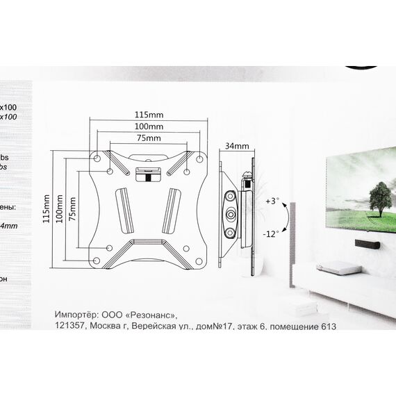 | Подходит для телевизоров c диагональю | 15", 19", 22", 24", 26" |