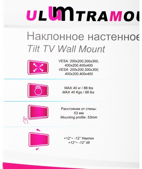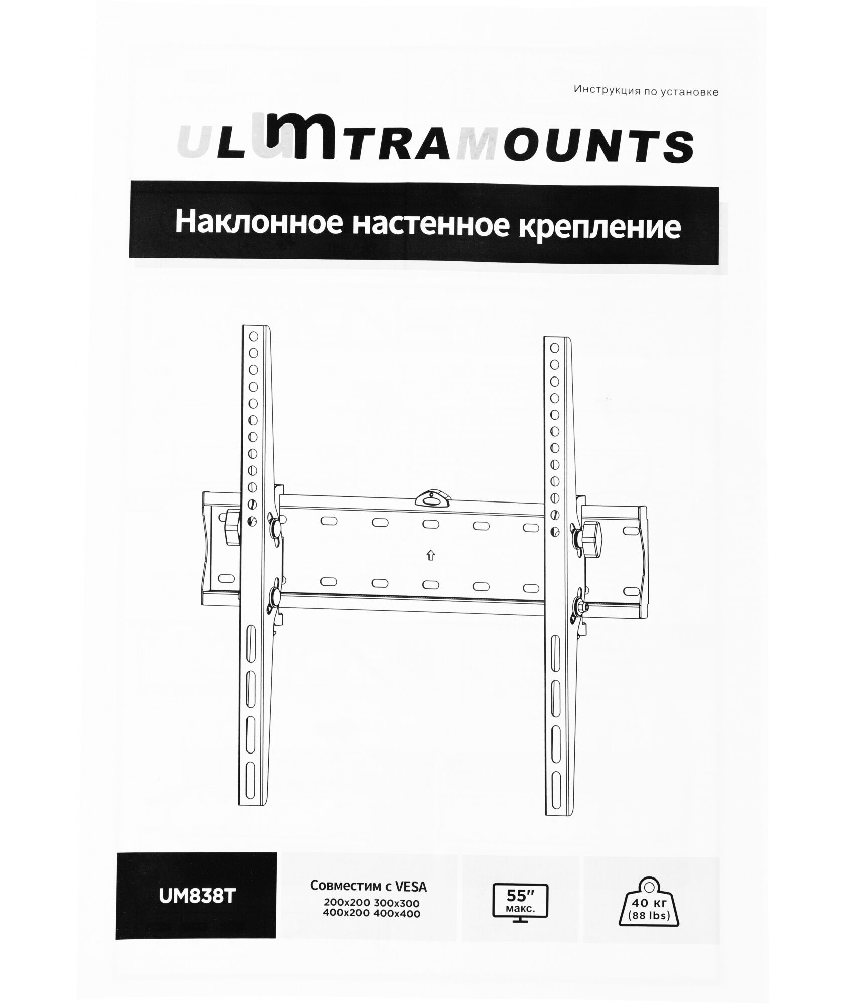 Кронштейн для телевизора Ultramounts UM838T черный 32"-55" макс.40кг настенный наклон