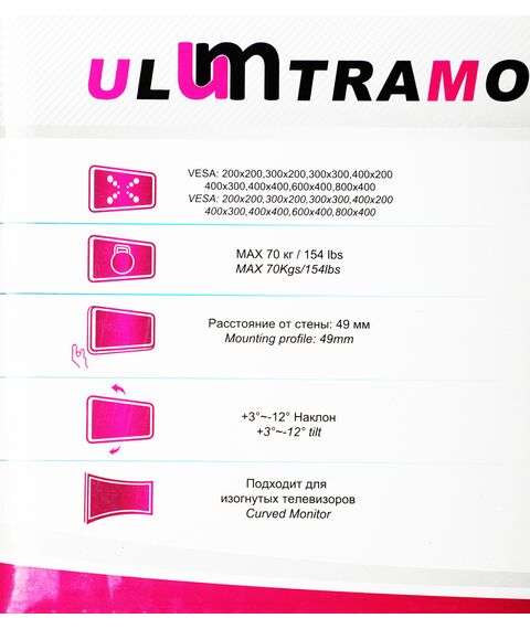Кронштейн для телевизора Ultramounts UM840T черный 43"-90" макс.70кг настенный наклон