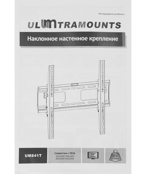 Кронштейн для телевизора Ultramounts UM841T черный 32"-55" макс.50кг настенный наклон