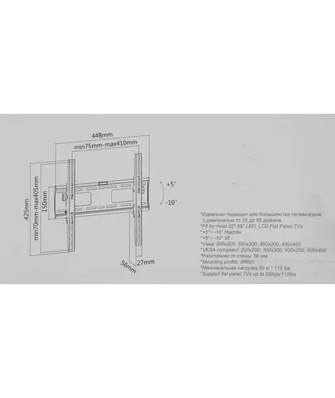 | Подходит для телевизоров c диагональю | 32", 37", 39", 40", 42", 46", 48", 50", 52", 55" |