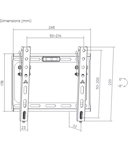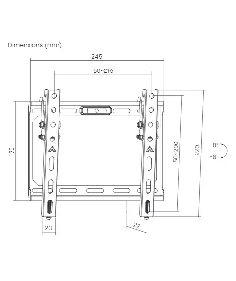 | Угол наклона | -8/+8 ° |