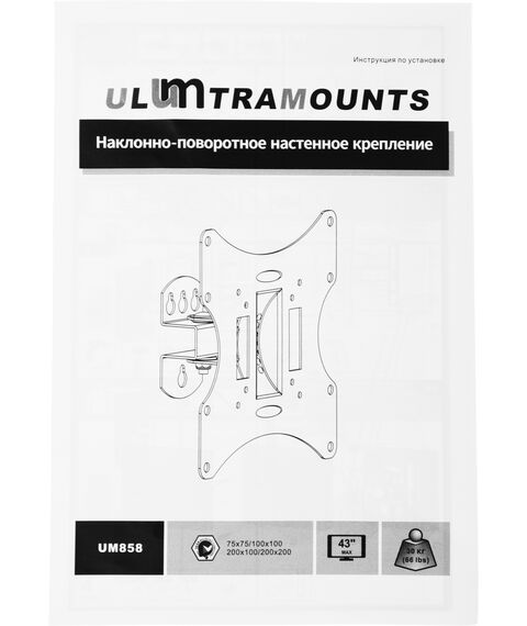 Кронштейн для телевизора Ultramounts UM858 черный 17"-43" макс.30кг настенный поворот и наклон