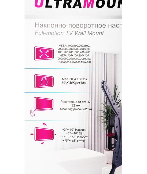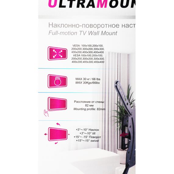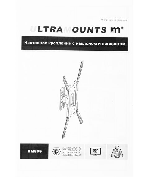 Кронштейн для телевизора Ultramounts UM859 черный 32"-55" макс.30кг настенный поворот и наклон
