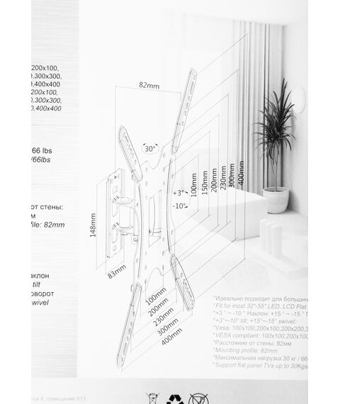 | Поддержка крепления VESA | 100x100, 100x200, 200x100, 200x200, 300x200, 300x300, 400x200, 400x300, 400x400 |