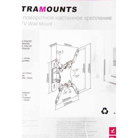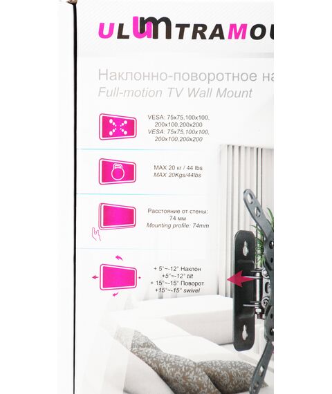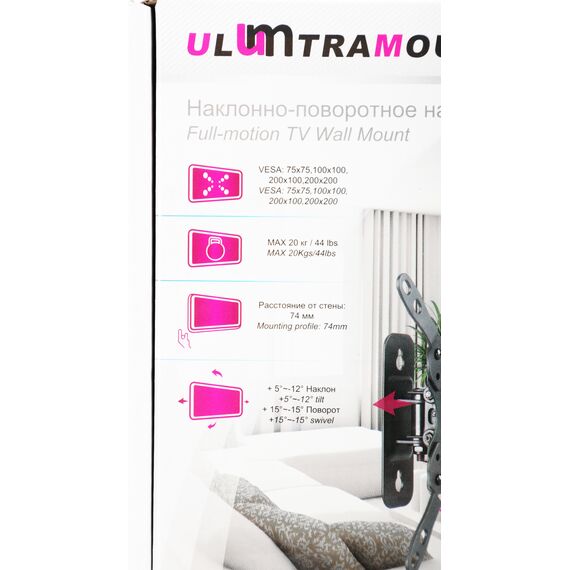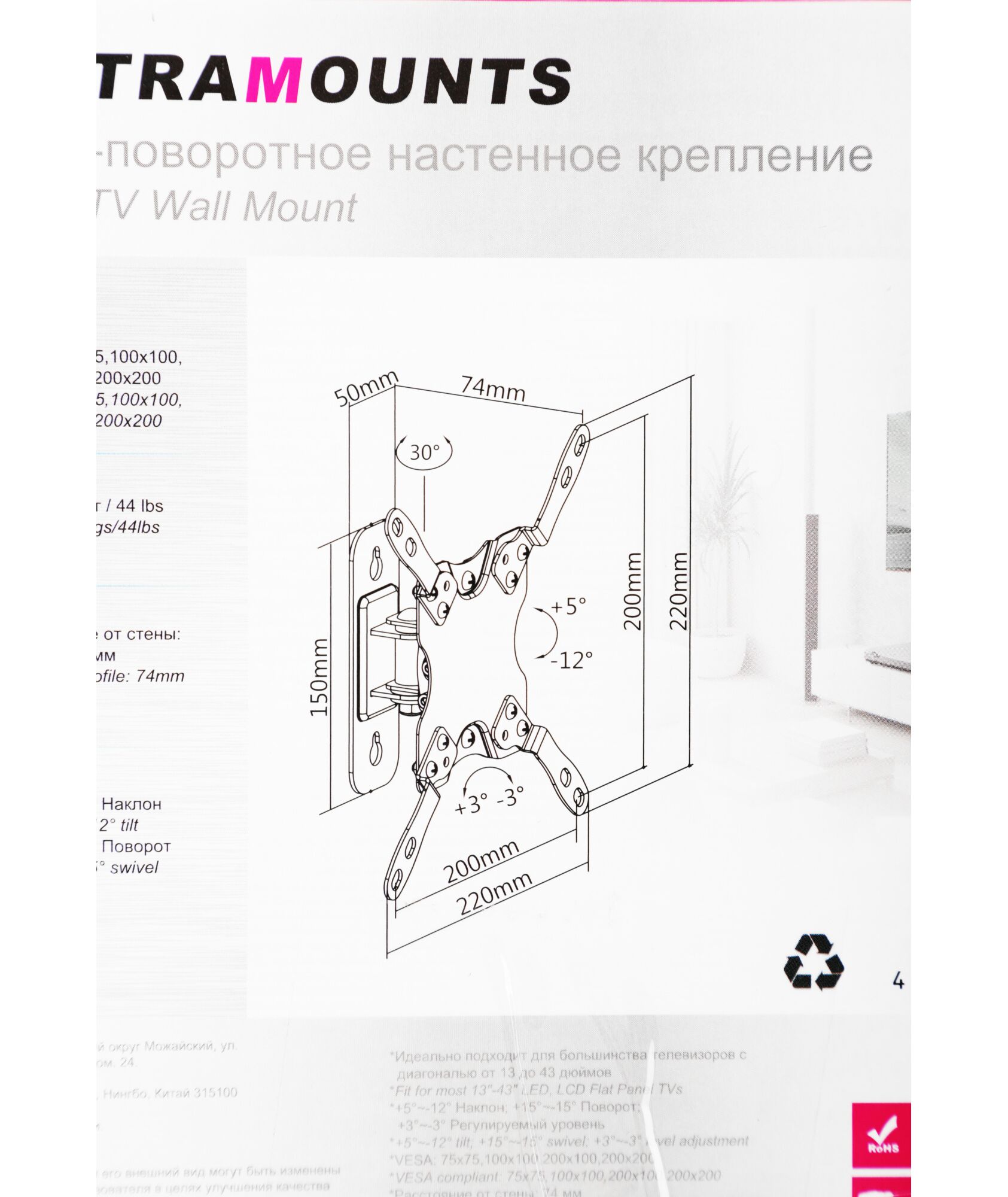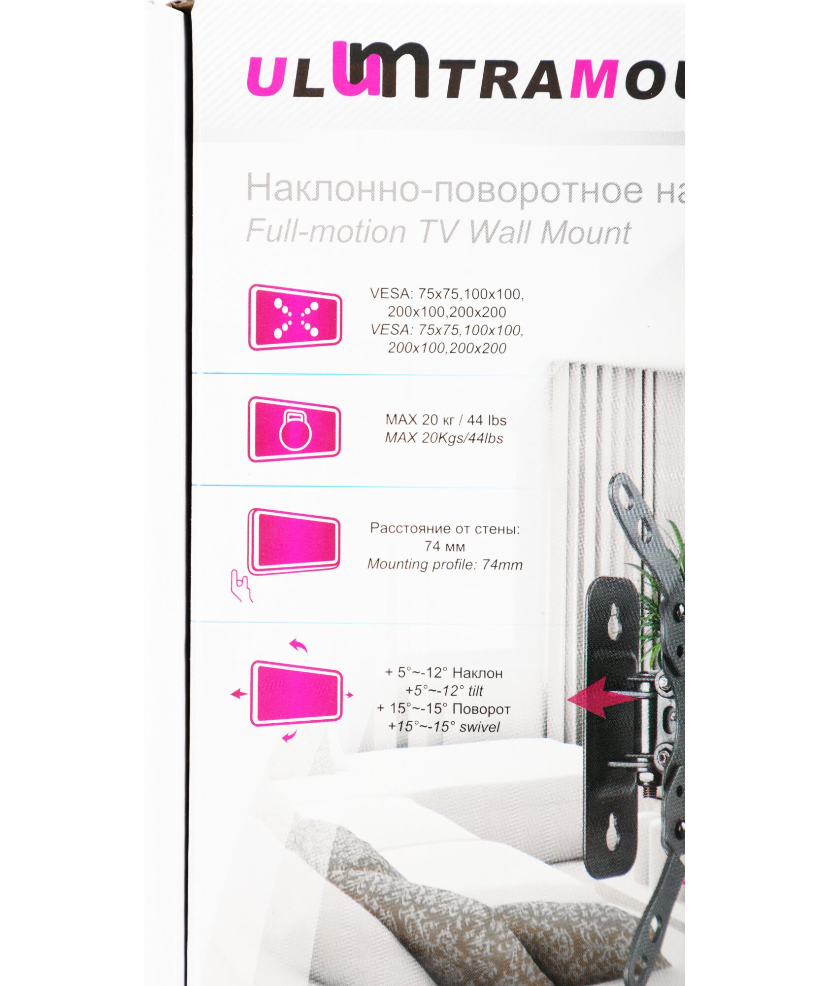 Кронштейн для телевизора Ultramounts UM862 черный 13"-42" макс.20кг настенный поворот и наклон