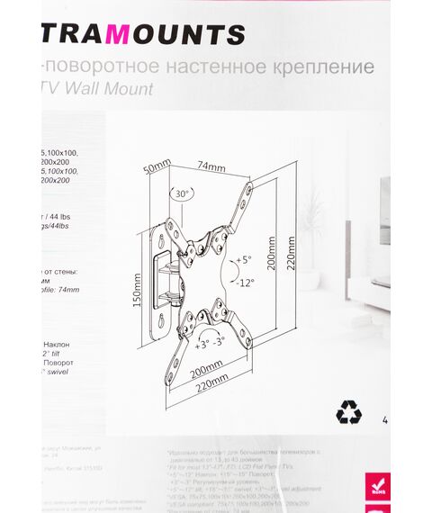| Поддержка крепления VESA | 100x100, 200x100, 200x200, 75x75 |
