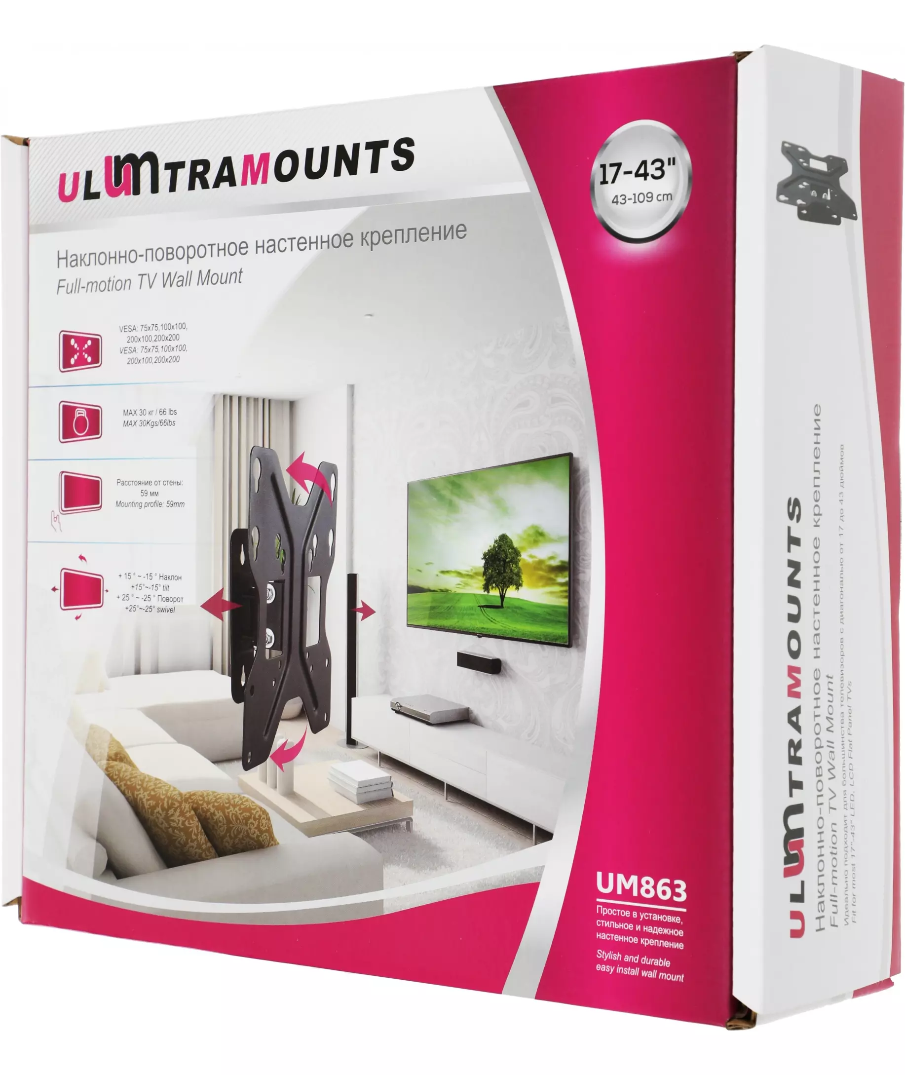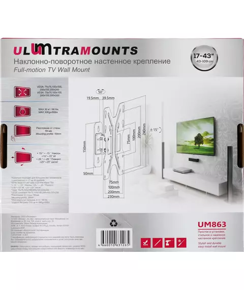 Кронштейн для телевизора Ultramounts UM863 черный 23"-42" макс.30кг настенный наклон