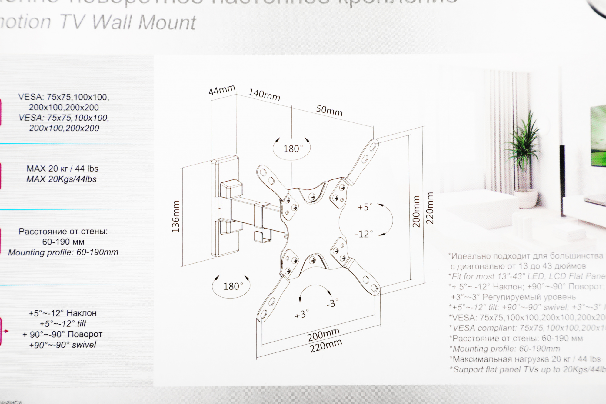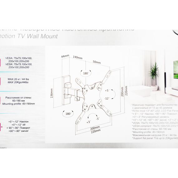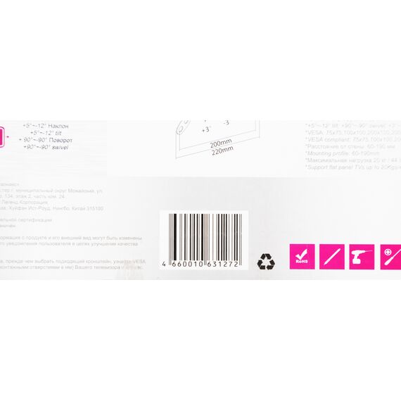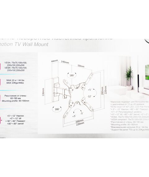 | Подходит для телевизоров c диагональю | 15", 19", 22", 24", 26", 28", 32", 37", 39", 40", 42" |
