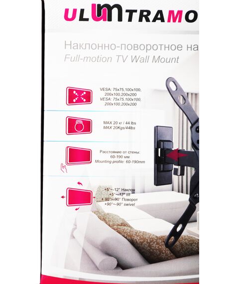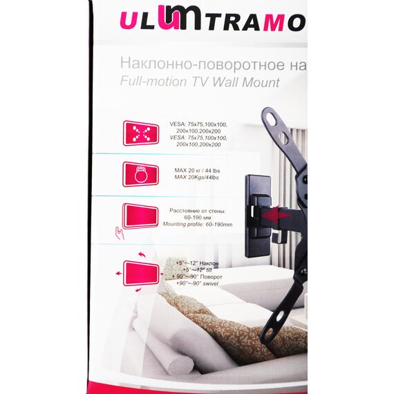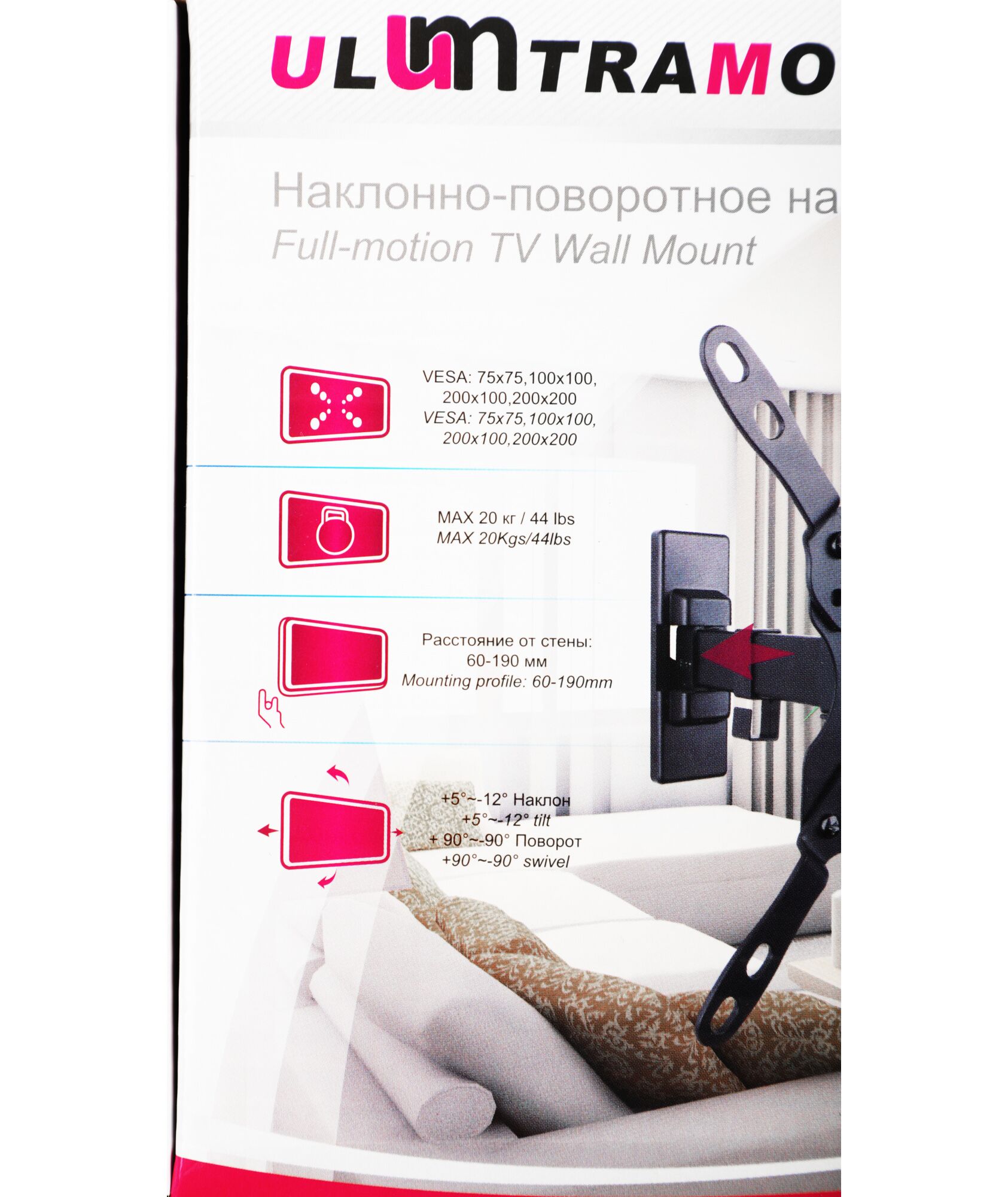 Кронштейн для телевизора Ultramounts UM864B черный 13"-42" макс.20кг настенный поворот и наклон