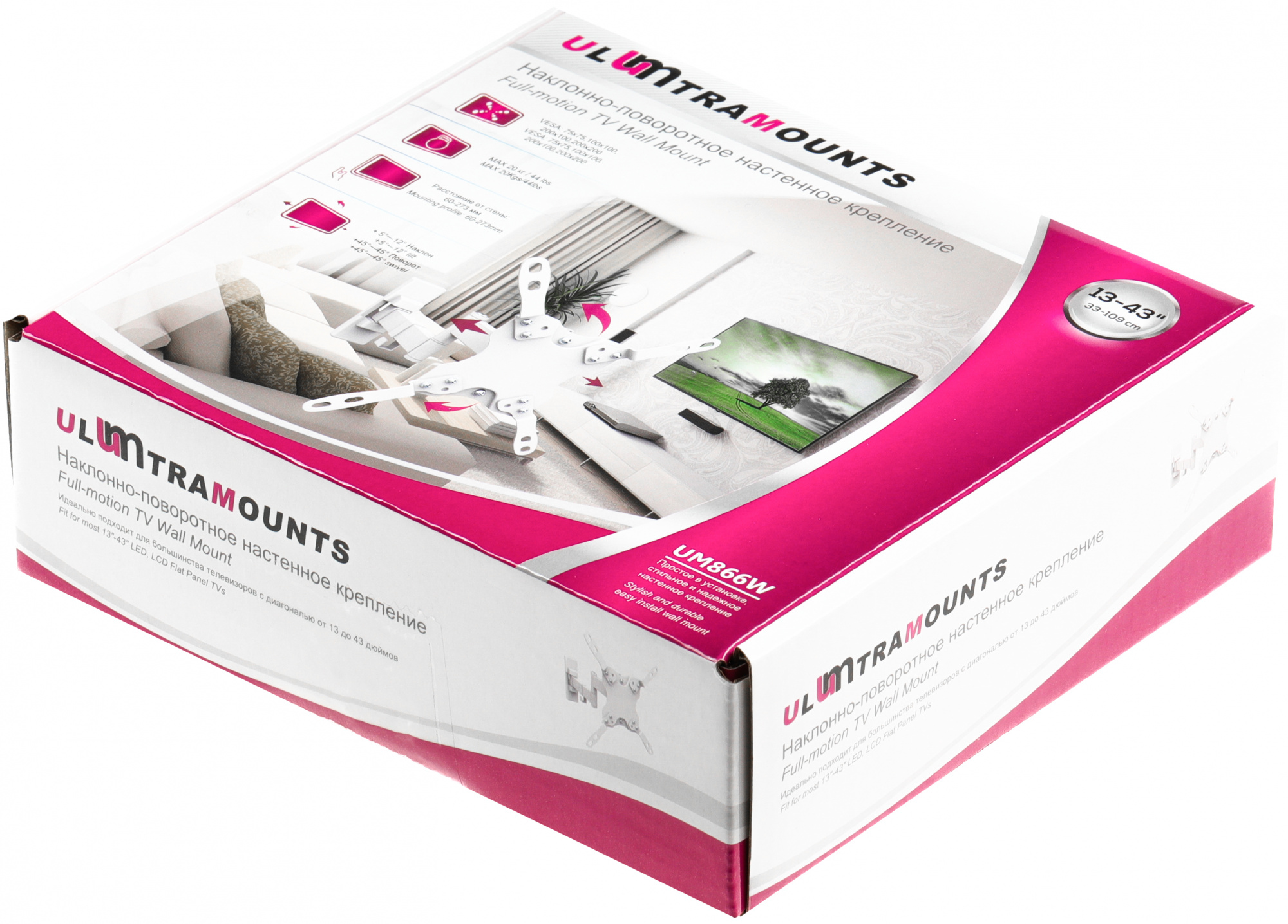 Кронштейн для телевизора Ultramounts UM866W белый 13"-42" макс.20кг настенный поворот и наклон