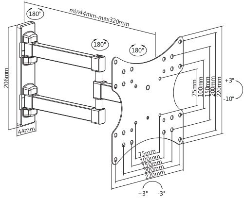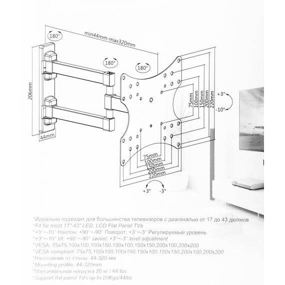 | Подходит для телевизоров c диагональю | 24", 26", 28", 32", 37", 39", 40", 42" |