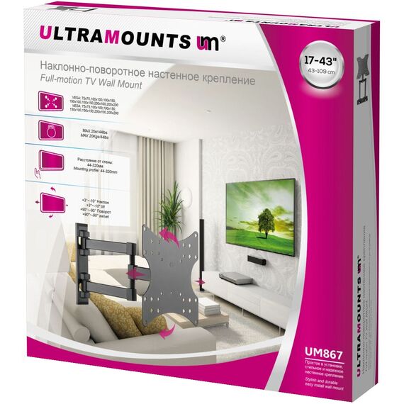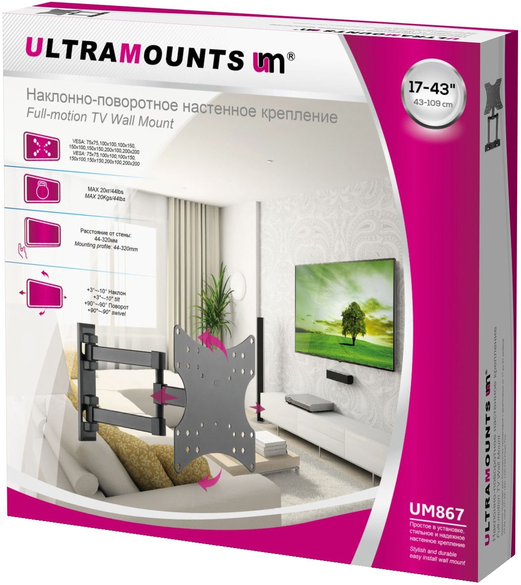 Кронштейн для телевизора Ultramounts UM867 черный 23"-42" макс.20кг настенный поворот и наклон