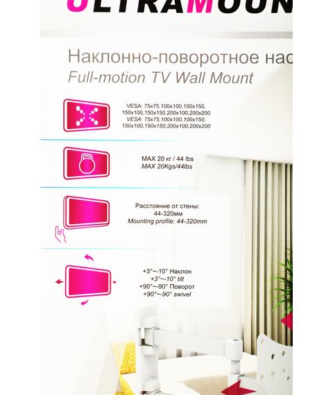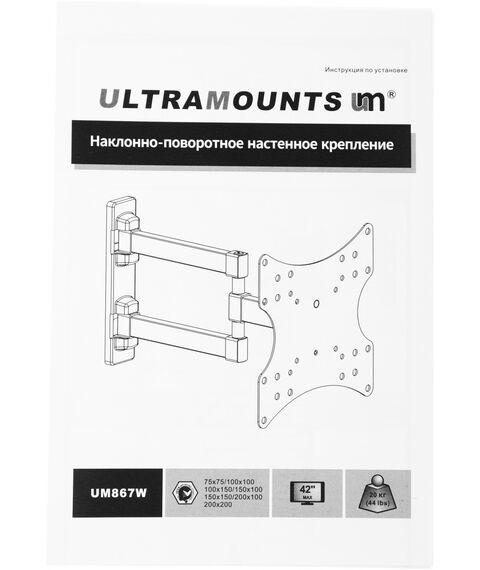 Кронштейн для телевизора Ultramounts UM867W белый 23"-42" макс.20кг настенный поворот и наклон