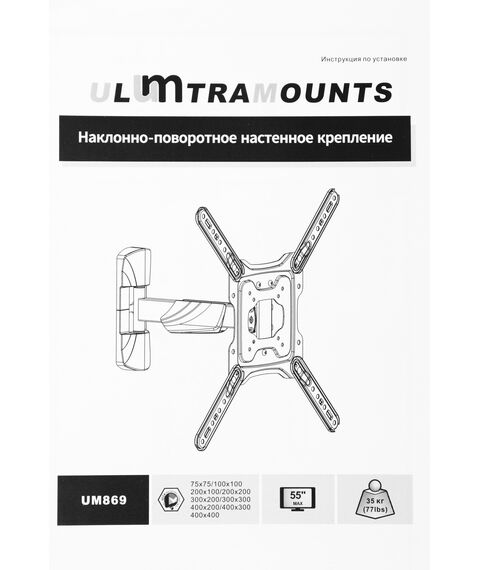 Кронштейн для телевизора Ultramounts UM869 черный 23"-55" макс.35кг настенный поворот и наклон