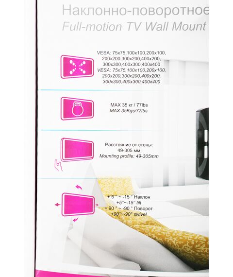 | Подходит для телевизоров c диагональю | 24", 26", 28", 32", 37", 39", 40", 42", 46", 48", 50", 52", 55" |