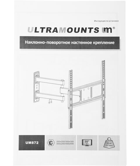 Кронштейн для телевизора Ultramounts UM872 черный 32"-55" макс.35кг настенный поворотно-выдвижной и наклонный